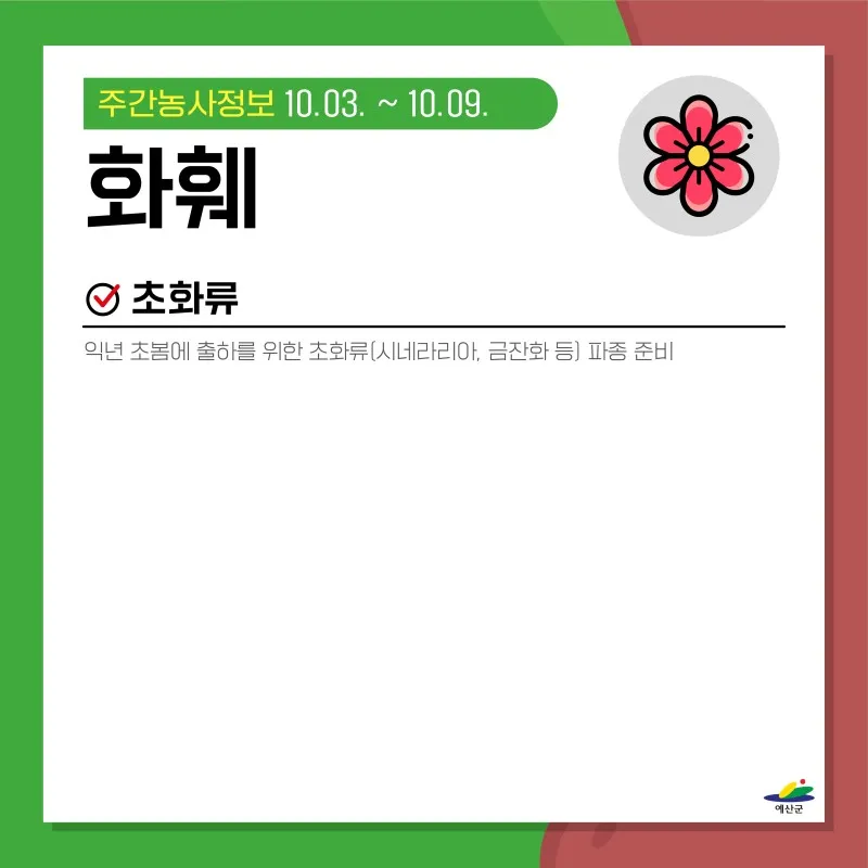 • (초화류) 익년 초봄에 출하를 위한 초화류(시네라리아, 금잔화 등) 파종 준비 |