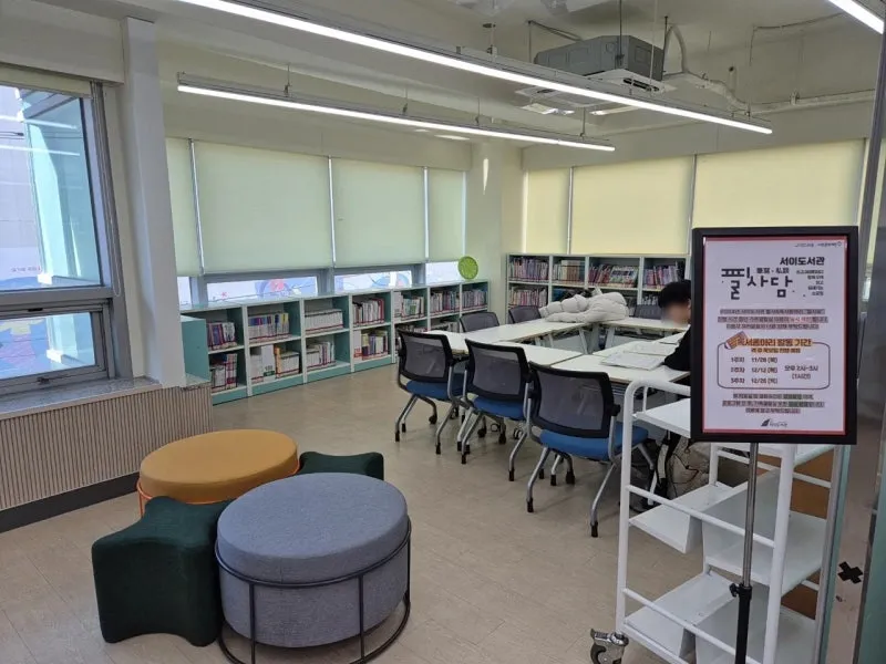 서이도서관은 강남역 인근에 있어 접근성이 좋은 서초구립도서관으로, 현대적이고 편리한 시설과 다양한 문화 프로그램으로 많은 서초구 주민들에게 사랑받고 있는데요. 도서관 내부는 고요하고 아늑한 분위기로 독서나 자기계발 활동 하기 좋아보였어요.