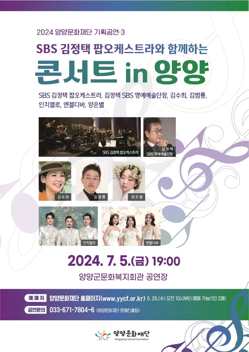양양문화재단, SBS김정택 팝오케스트라와 함께하는 콘서트 IN 양양 개최