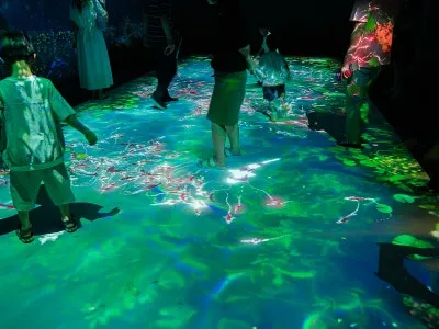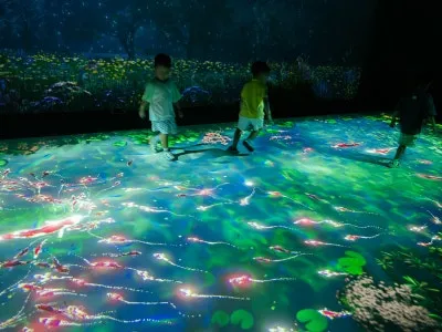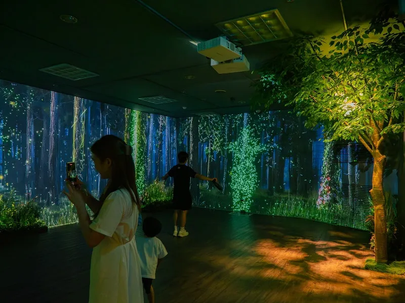 다음 전시관에 들어서자, 마치 깊은 바닷속에 들어온 듯 아름다운 물고기들이 유유히 헤엄치는 광경이 눈앞에 펼쳐졌습니다. 최첨단 기술을 통해 구현된 공간에서 아이들은 물고기와 교감하며 자연과 하나 되는 듯한 특별한 경험을 하고 있었습니다.