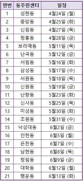 ⭐장소 : 일정에 따라 각 동주민센터 ※일정 변경 가능. 문의 후 방문 바람!!