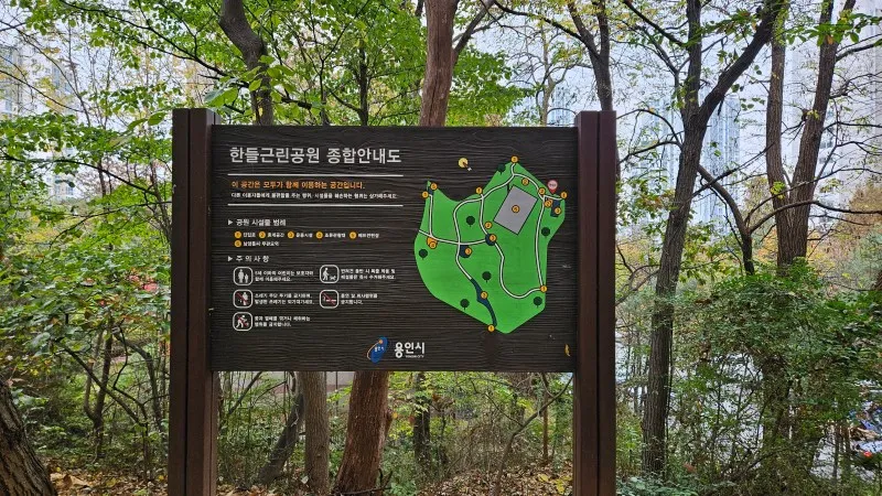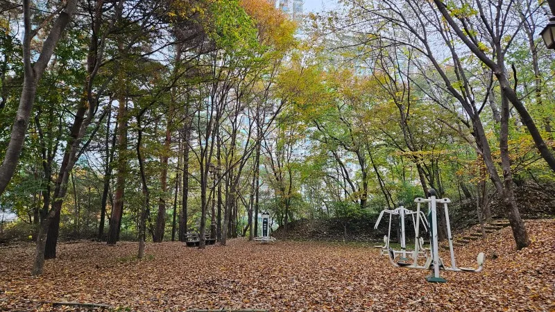 동백지구에 조성된 근린공원만 해도 대여섯 개가 넘는데 그중 한숲 근린공원과 한들 근린공원은 산속에 조성된 공원으로 시민들의 사랑을 듬뿍 받고 있습니다. 진입로는 작은 계단으로 시작해 바로 산속으로 들어서게 되는데 벤치와 운동기구가 산 위 작은 공원에 설치되어 있어 등반하다가 몸을 풀 수도 있고 시민들이 즐겨 사용하는 모습을 종종 봅니다.