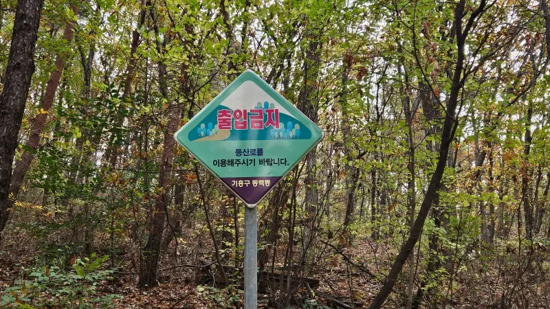 걷다 보니 이전에는 없던 안내문 하나를 발견했는데요. '출입 금지'라는 팻말입니다. 길이 아닌 곳으로 누군가 출입을 하는 모양입니다. 등산로가 정말 이쁘게 조성되어 있는데 왜 산으로 진입을 하는 건지 의아스럽긴 한데요. 성숙된 용인시민의식의 발현을 기대해 봅니다.