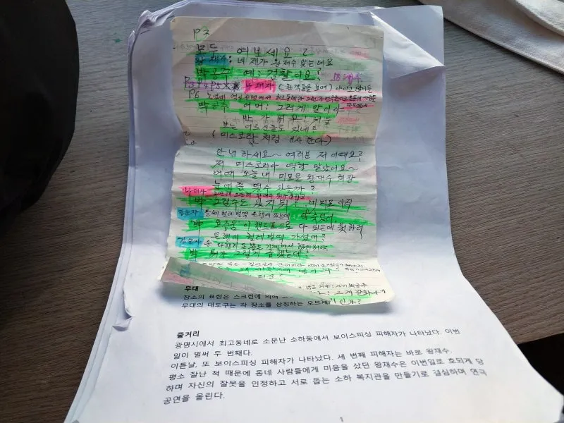 색연필로 밑줄을 그어가며 열심히 했던 흔적들이 남아 있기도 하다. 메모지는 꼬깃꼬깃 해졌다.
