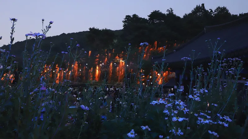 세종특별자치시 장군면에 있는 장군산 영평사에서는 10월 5일(토)부터 10월 13일(일)까지 구절초 축제가 열렸습니다. 축제 기간 중 영평사 경내에서는 개막공연을 비롯하여 산사음악회, 요절복통 마당놀이, 낙화축제 등이 열리고 매일 점심 국수 공양을 무료로 제공합니다. 축제 행사 중 낙화축제는 10월 11일(금)과 12일(토) 이틀에 걸쳐 열리는데, 첫날에는 방문객들에게 낙화의 아름다움을 보여주는 행사인 데 비해 둘째 날에는 낙화 점화에 앞서 낙화와 관련한 불교 의례와 음악 연주회를 함께 한다고 합니다. 첫날 낙화축제 현장을 다녀왔습니다. 낙화는 정월 대보름, 사월 초파일, 칠월 기망(旣望) 등의 밤에 벌이는 불놀이라고 하는데 먼저 그 유래부터 살펴보겠습니다.