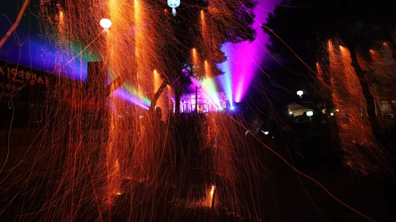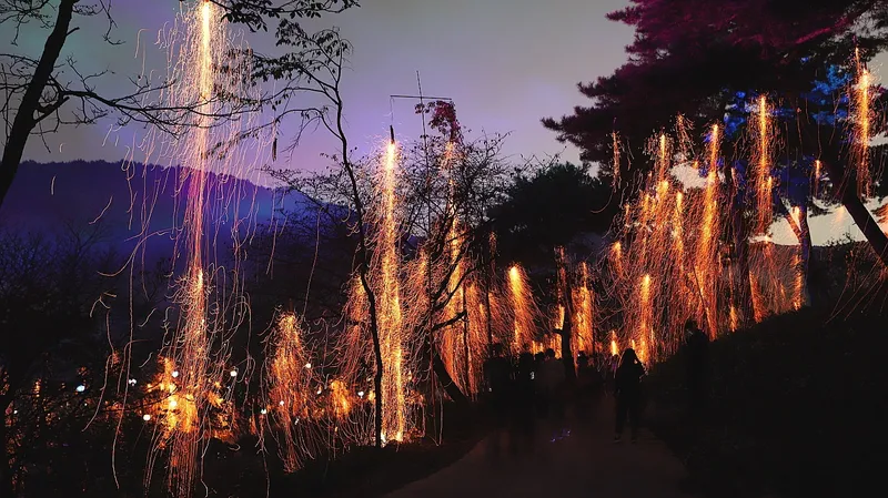 점화한 다음 본격적으로 낙화를 볼 수 있으려면 30분 정도 지나야 하는데 어둠이 내리는 시각과 비슷하게 맞아지는 것 같습니다.