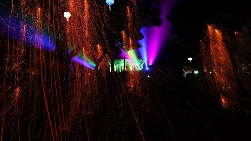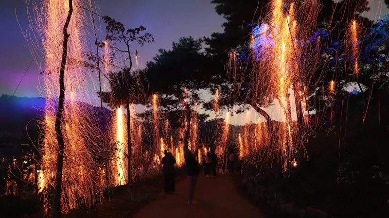 어둠이 내리면서 낙화가 빛을 발하기 시작합니다.
