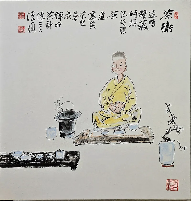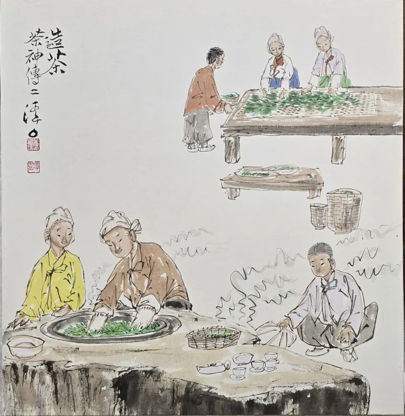 찻잎을 덖는 과정을 표현한 이 작품은 이름이 '조다(造茶)'인데 역시 작품가는 450만 원이네요. 아궁이에 부채질하는 아이의 모습이 재미있습니다. 이 외에도 선(禪)과 차(茶)를 주제로 한 작품 약 50점이 전시되어 있습니다.