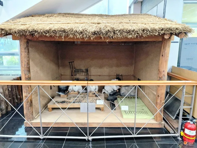 생활공예품과 함께 전시되어 있습니다.