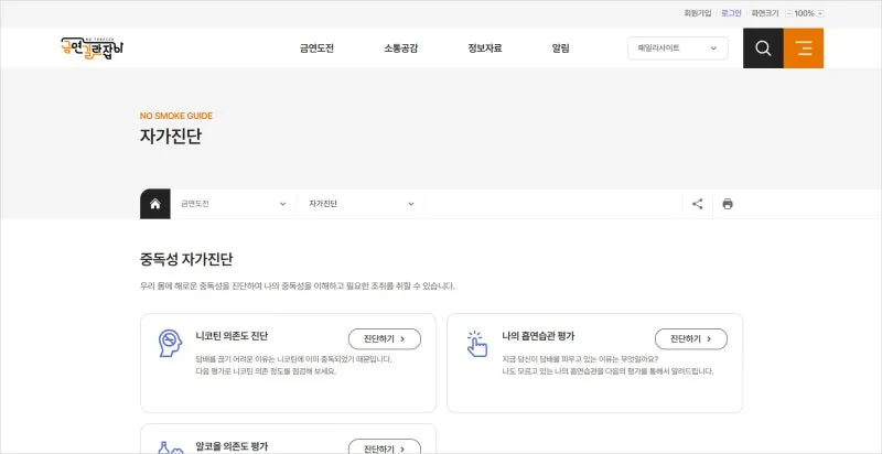나의 니코틴 의존도 테스트 / 나의 흡연 습관 평가 / 금연 후 나의 생존 이득 등