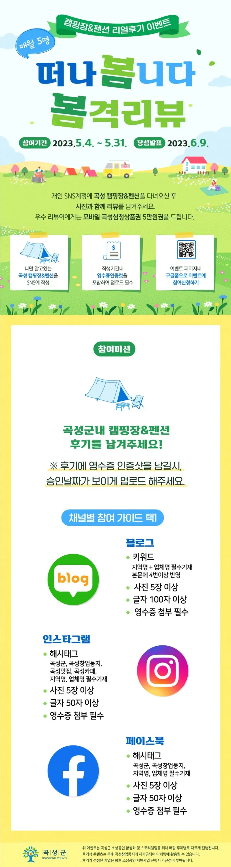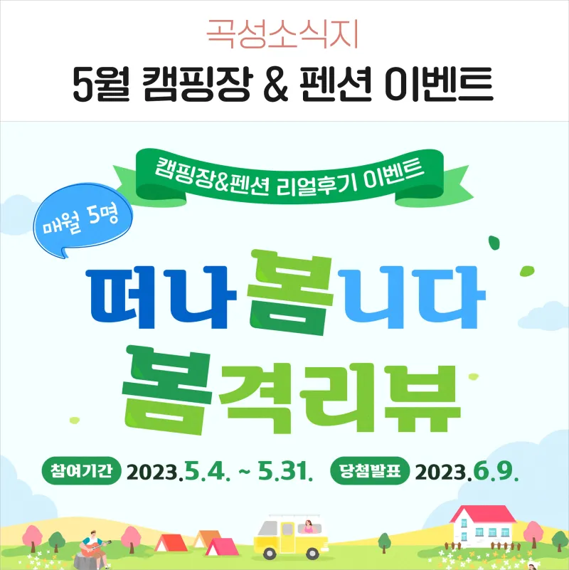 [5월 캠핑장&펜션 후기 이벤트] 곡성창업둥지 SNS후기쓰고 상품권받고!