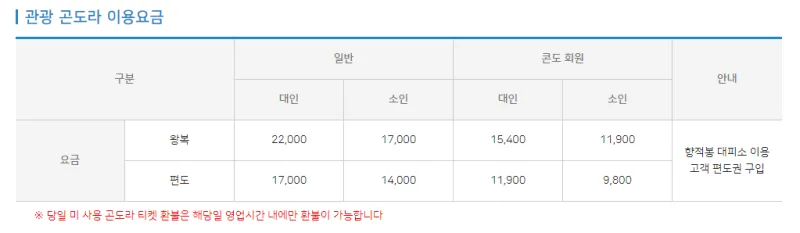 저는 여행 전 미리 네이버 예매를 통해 곤도라 왕복요금을 예매했는데요. 혹시 곤도라 이용을 못해도 100% 전액 환불이 가능하기 때문에 부담 없이 예매를 진행합니다. 여기서 하나 주의할 것은 구매한 당일 사용은 불가능하다는 점, 최소 하루 전에는 구매하셔야 합니다.