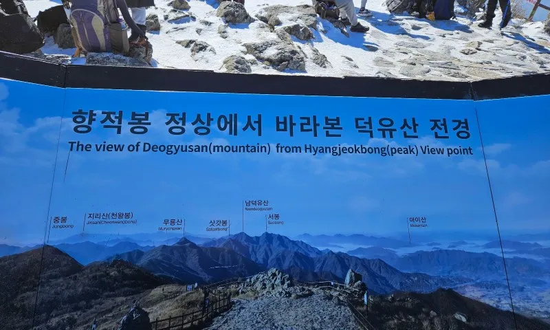 향적봉 정상에 서면 맑은 날에는 지리산, 마이산, 대둔산, 계룡산까지 시야에 들어온다니 하나하나 숨은그림찾기 하듯 사진 속 명산들을 찾아보기도 합니다.