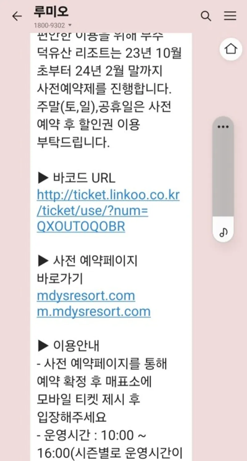 곤도라 이용권을 예매하면 바로 카카오톡 메시지가 도착하는데 매년 10월 초부터 2월 말까지는 사전예약제로 진행됩니다. 해당 기간 주말(토, 일)과 공휴일 이용 시에는 사전 예약 페이지를 통해 예약을 확정해야만 하는데 저는 평일 이용이라 사전 예약 없이 방문했습니다.