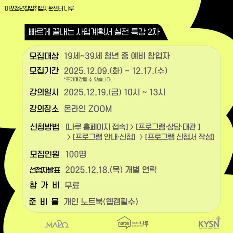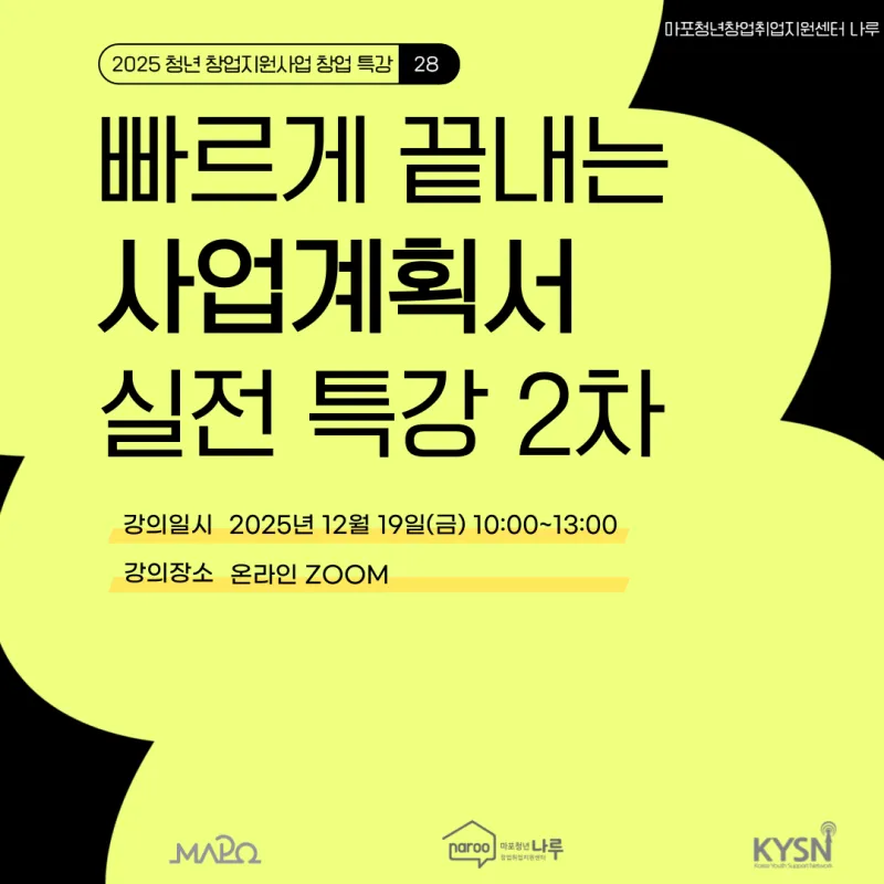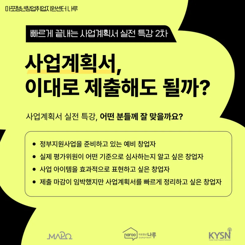 마포청년창업취업지원센터나루 <사업계획서 실전 특강> 안내