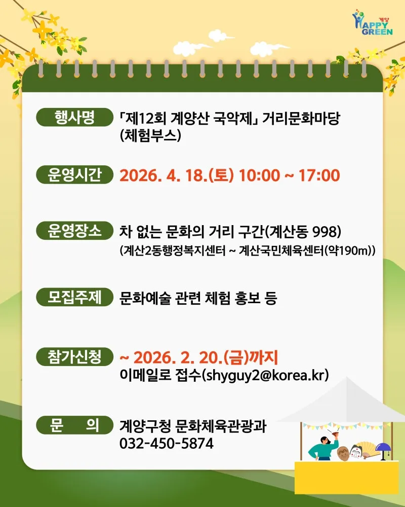 📢제12회 계양산 국악제 체험부스 참여자 모집 안내