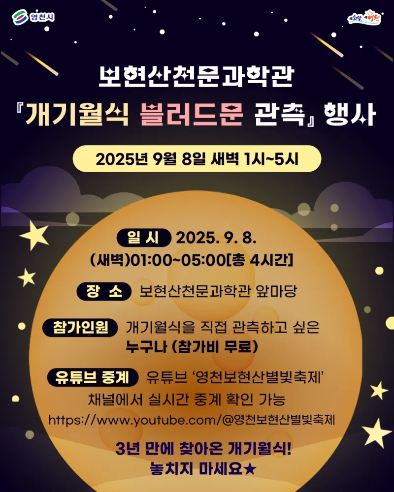 ✅ 유튜브 중계 : 유튜브 "영천보현산별빛축제" 채널에서 실시간 중계 확인 가능