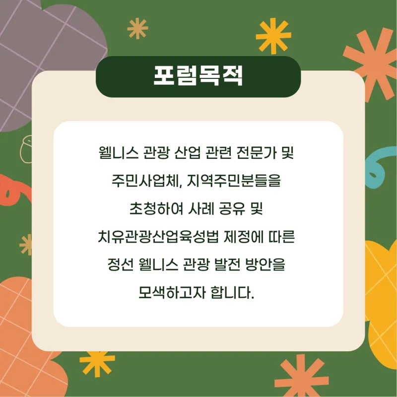 ‘정선 웰니스 관광 포럼(Jeongseon Wellness Tourism Forum)’을 개최합니다.
