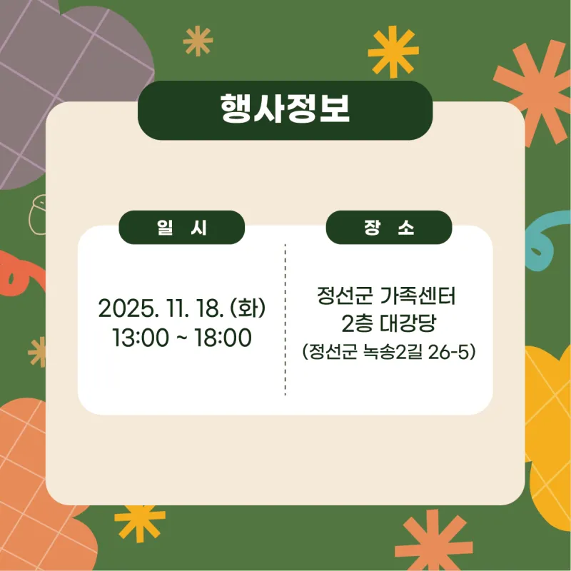📍 장소 : 정선군 가족센터 2층 대강당 (정선군 녹송2길 26-5)