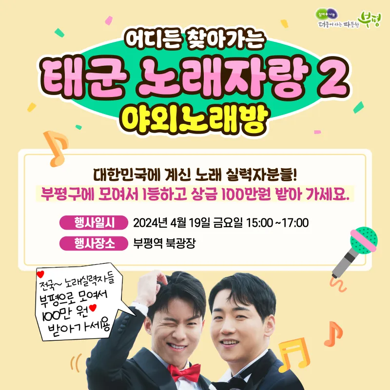부평구, 어디든 찾아가는 태군 노래자랑2 야외노래방