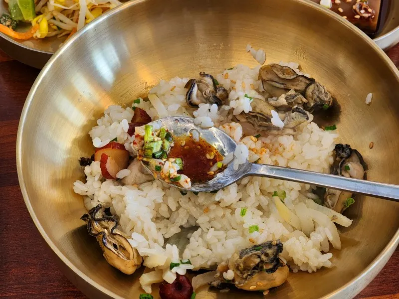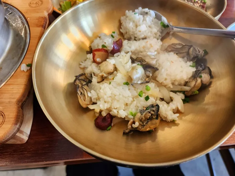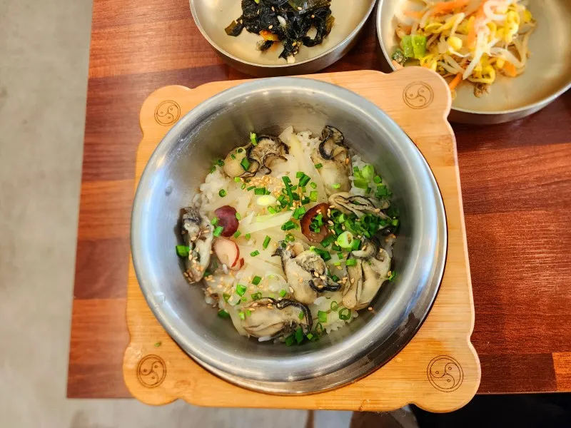 굴 돌솥밥은 굴에 대추, 은행, 무 등을 넣어 만든 약밥입니다.
