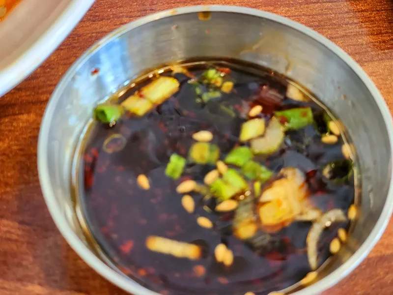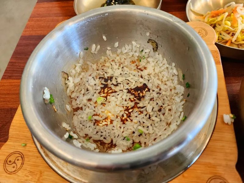 돌 솥에서 밥을 덜어서 간장을 넣어 살살 비비면 됩니다.