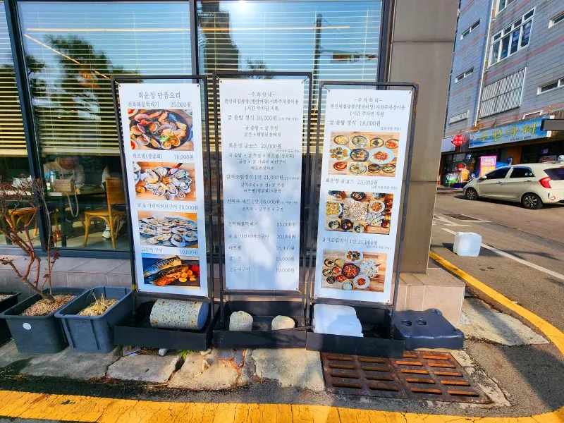 통영 여행길에 한산대첩광장을 지나다 밖에 전시된 굴 코스 요리를 보고 들어간 이 식당은 한산대첩광장 바로 앞에 위치한 곳입니다.