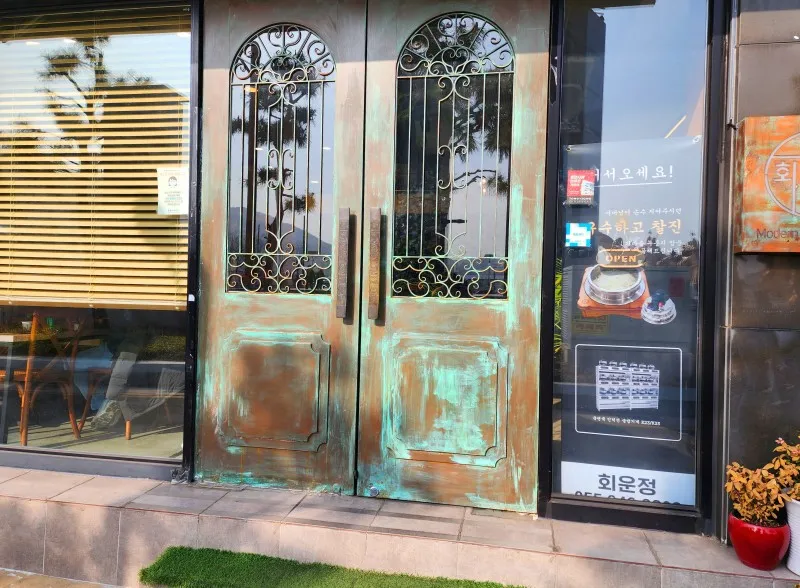 식당의 출입문은 동으로 제작되어 중후한 멋이 너무 아름다운 식당이었습니다.
