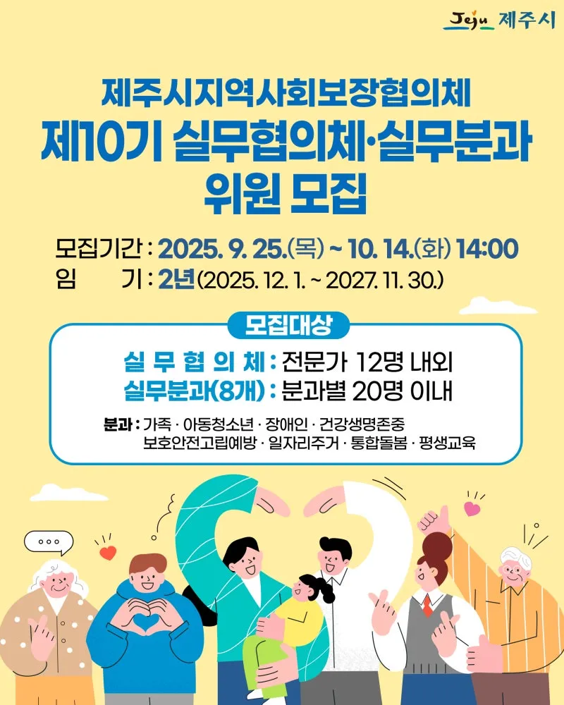 제주시지역사회보장협의체 제10기 실무협의체·실무분과 위원 모집 ✨