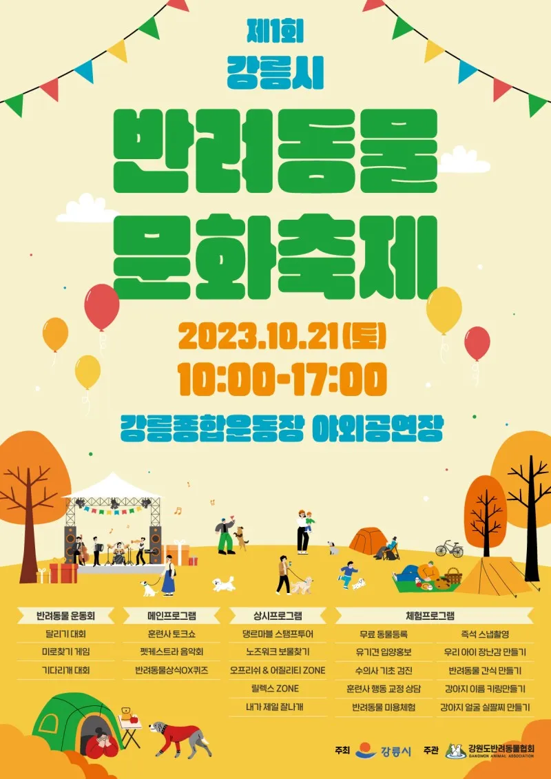 제1회 강릉시 반려동물 문화축제를 개최하오니 많은 분들의 참여를 바랍니다!!
