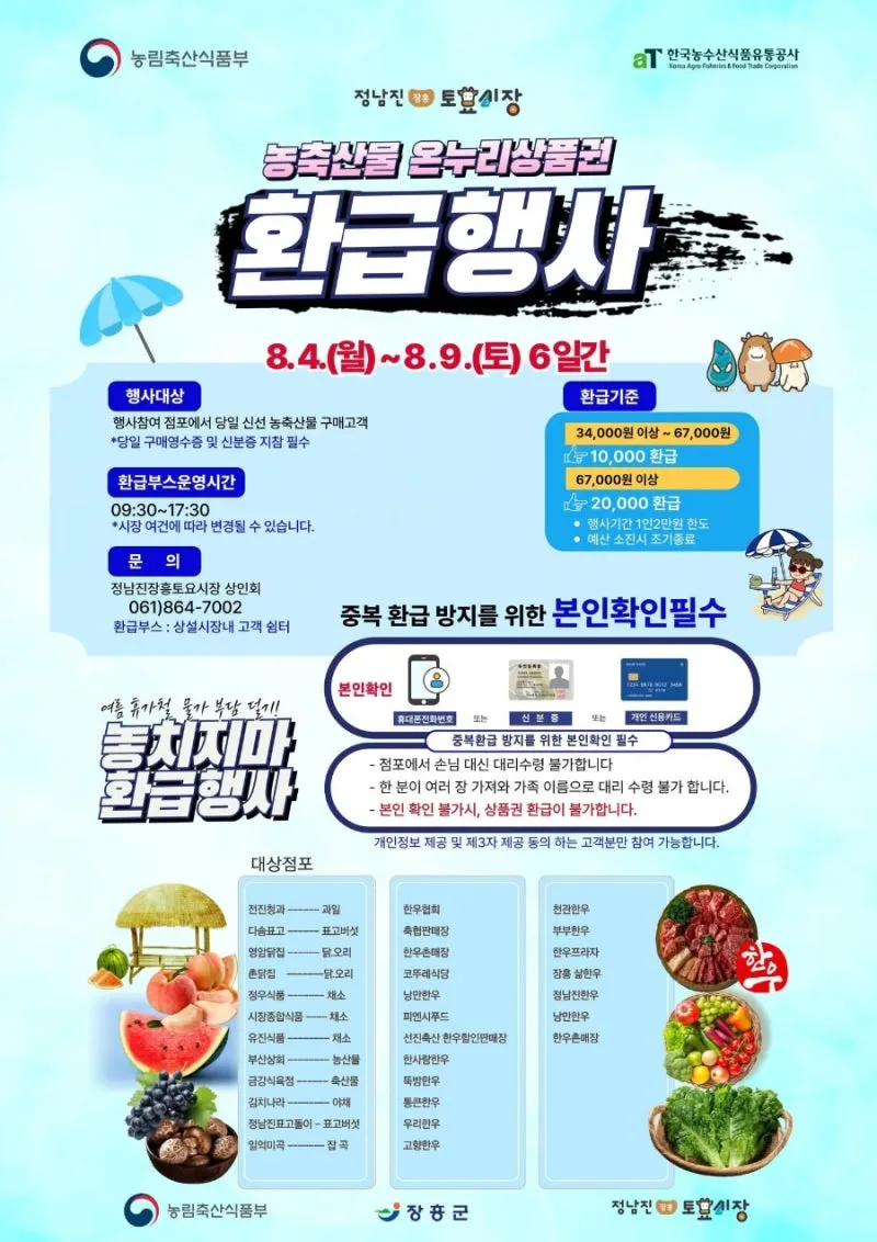 #장흥군 #정남진토요시장 #온누리상품권 #농축산물환급 #장흥전통시장 #여름이벤트 #물가안정 #장흥여행 #장흥핫플 #시장탐방 #장흥군청 #전통시장살리기 🛒🌾💚