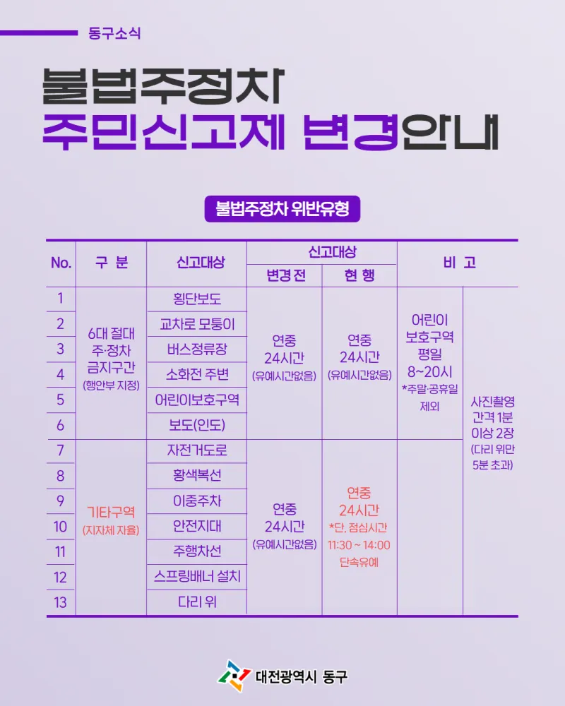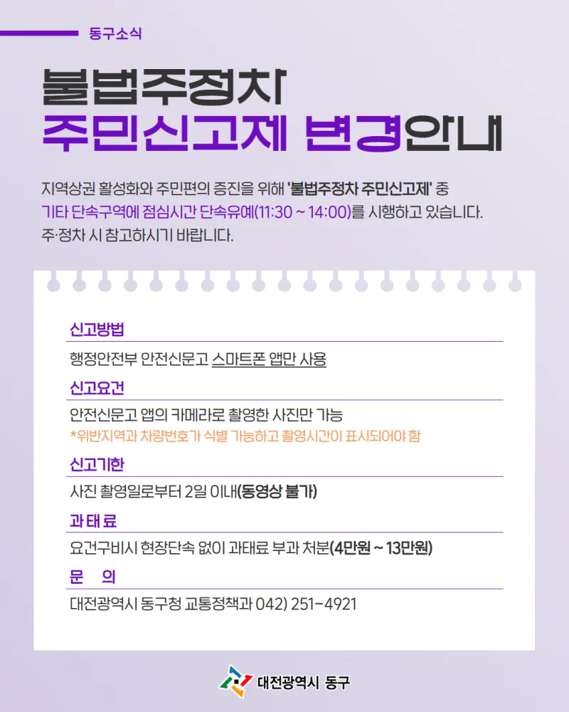점심시간 단속유예(11:30 ~ 14:00)를 시행하고 있습니다.