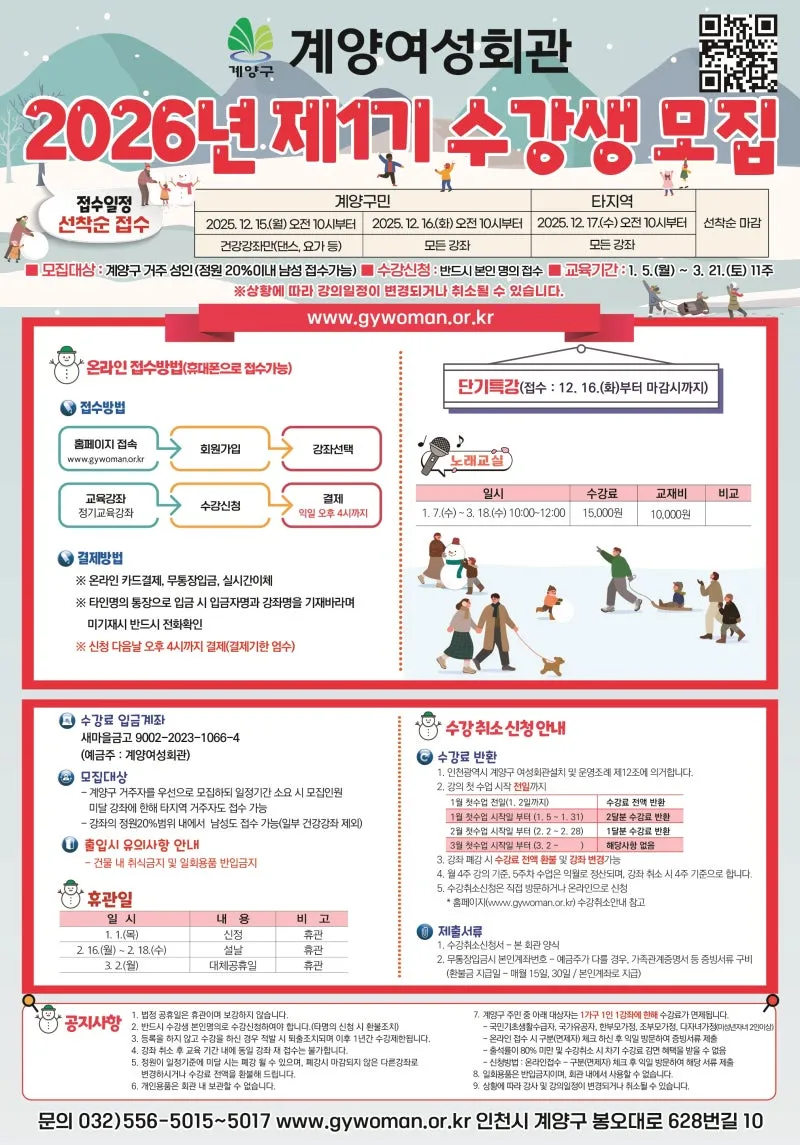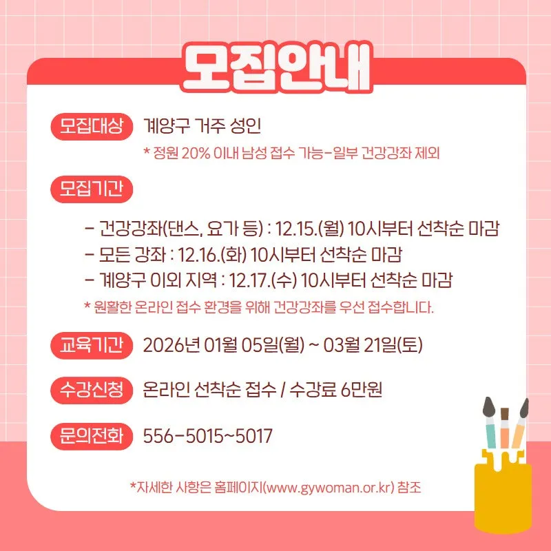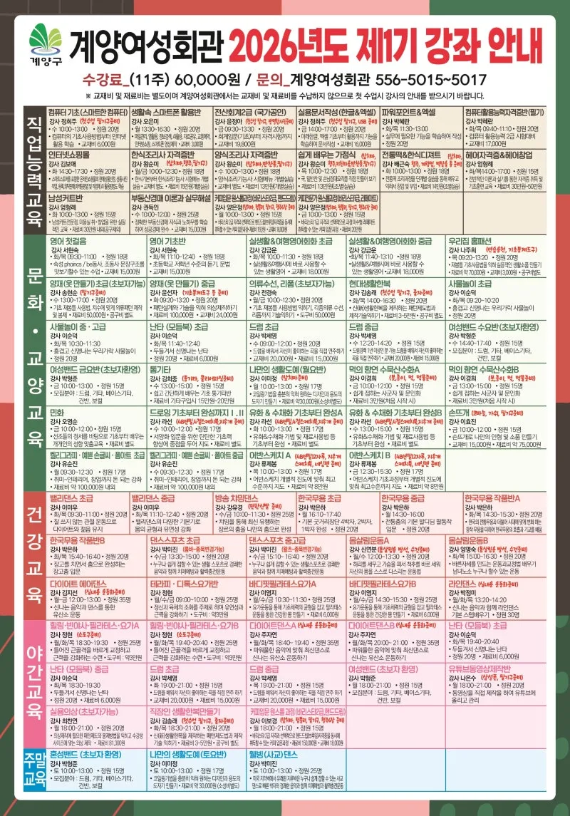 계양여성회관 2026년 제1기 수강생 모집 및 강좌안내