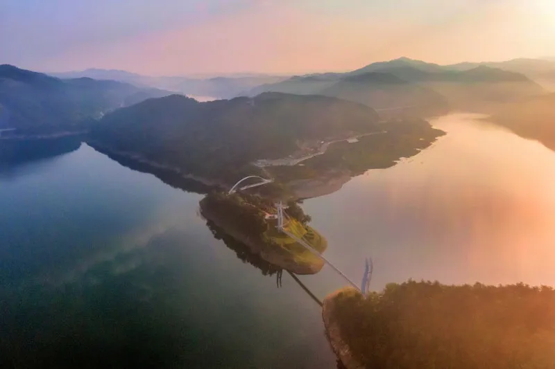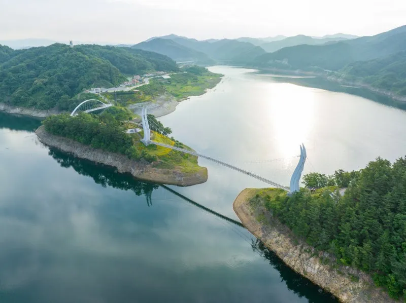 영주호와 어우러진 용천루 출렁다리는