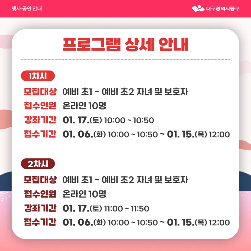 동구 가족분들의 많은 참여와 관심 부탁드립니다🙌