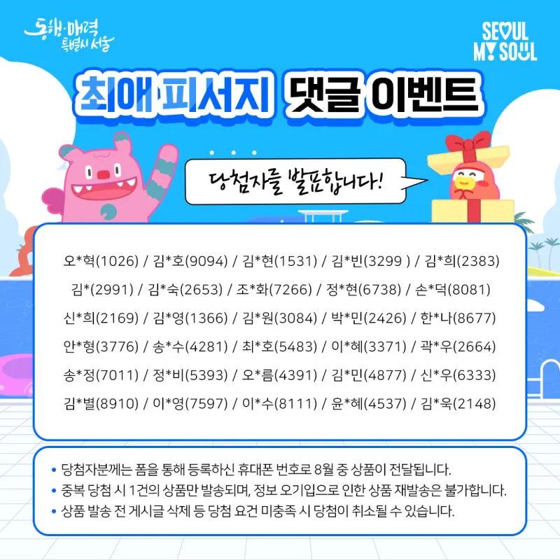 [이벤트 당첨자 발표] 7월 최애 서울 피서지 고르기 당첨자를 발표합니다