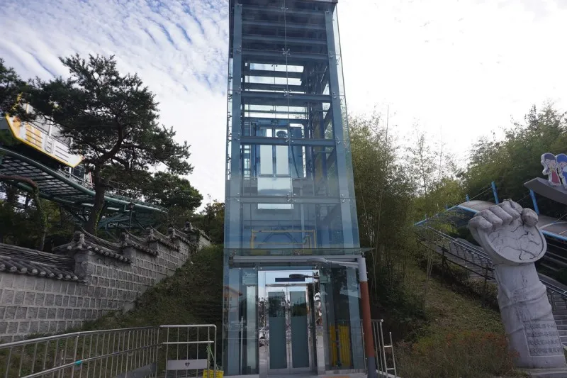 입장권을 발급받으면 야외 에스컬레이터를 타고