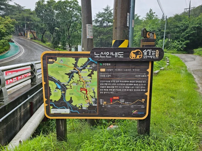 선산체육공원 물놀이장 가기 전에는 안내판이 있는데요, 숲길 따라 도보여행길이 있습니다.
