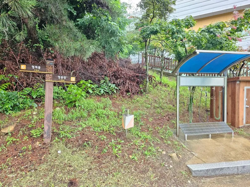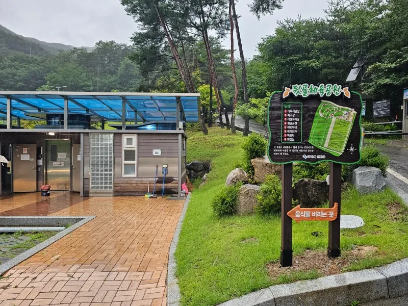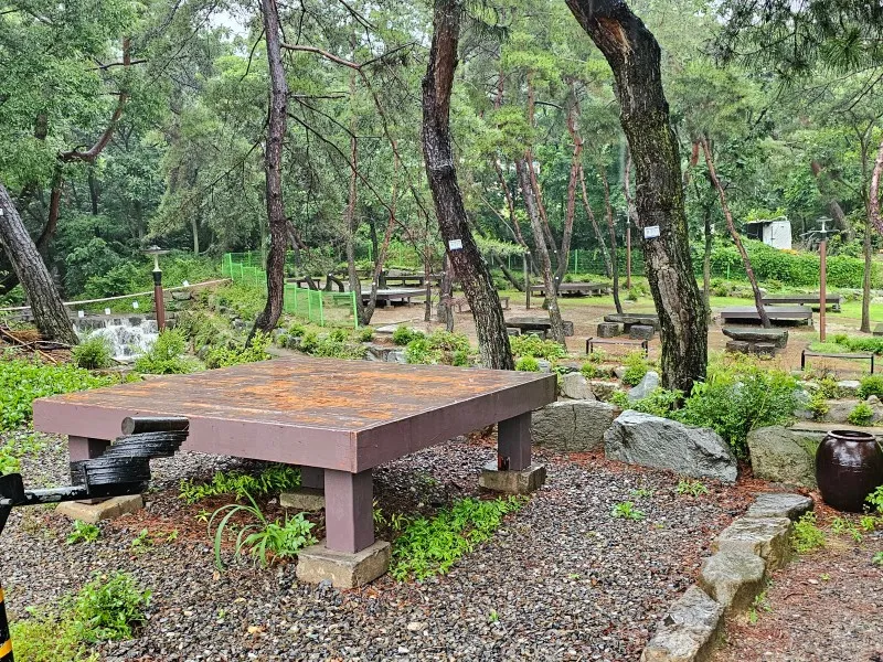 뒤에는 산이 있고 나무들이 많아 숯불이나 불을 피우는 건 안될 거 같고 간단한 취식 정도는 가능한 것 같습니다.