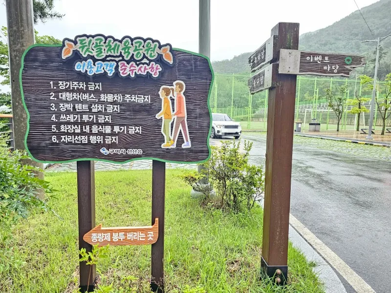 뒤에 사용하는 분들의 위해 쓰레기 투기 금지, 자리 선점 행위 금지, 장기주차금지 등이 있습니다.