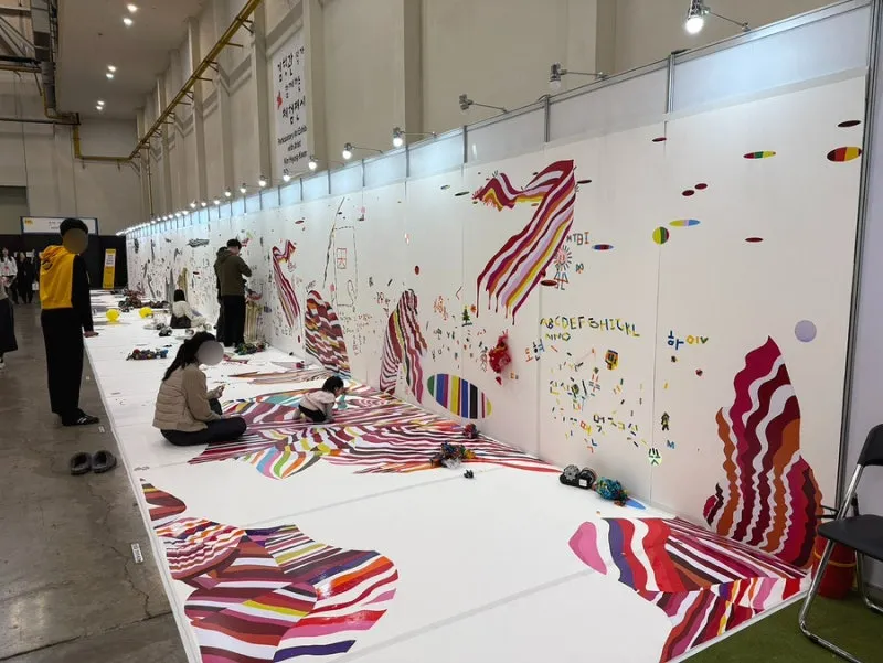 대형 종이에 자유롭게 그림을 그릴 수 있는