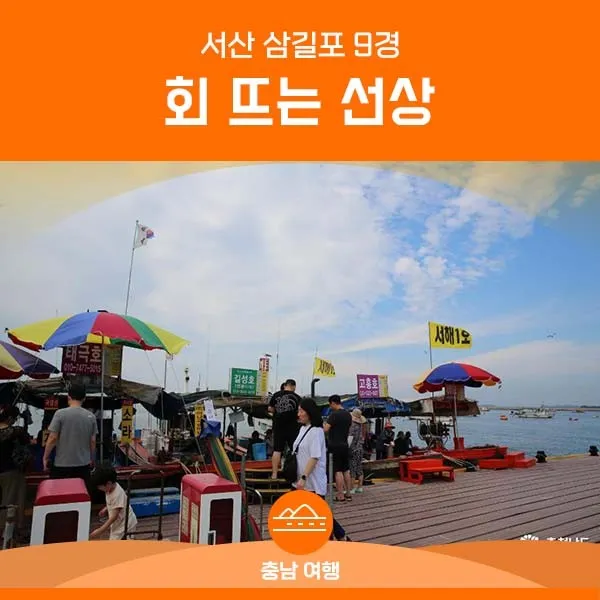 삼길포항의 명물로 낚시하는 손맛을 제대로 즐기는 서산 좌대낚시도 있지만, 직접 배를 끌고 나가서 잡아온 해산물과 회맛을 볼 수 있는 회 뜨는 선상에서 먹어보기 위해 찾아온 사람들로 북적거린다.