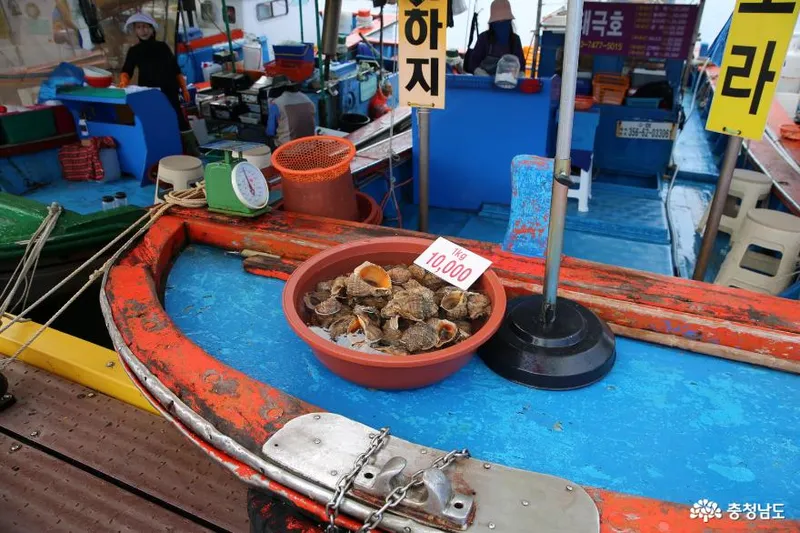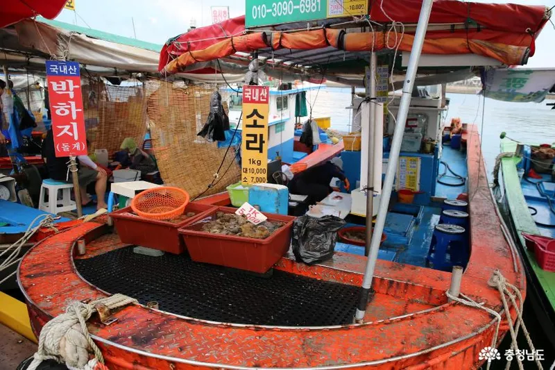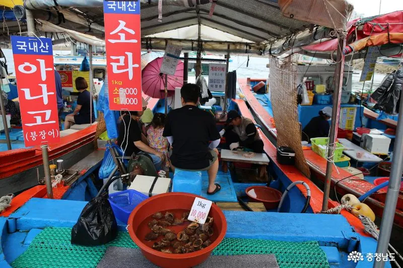 이곳에는 분명히 자신들만의 자리가 있을 것이다. 이곳에 자리한 배들은 대략 20여 척 정도가 되어 보였다. 회 뜨는 선상에서는 그 자리에서 회를 떠서 맛볼 수 있고 양에 비해 무척이나 저렴한 가격이 특징이다. 오래간만에 듣는 갈매기 소리와 환상적인 날갯짓은 기분 전환도 해볼 수 있다.