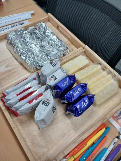 수강생들 간식도 준비되어 있고 명찰까지 준비가 되어 있었습니다.