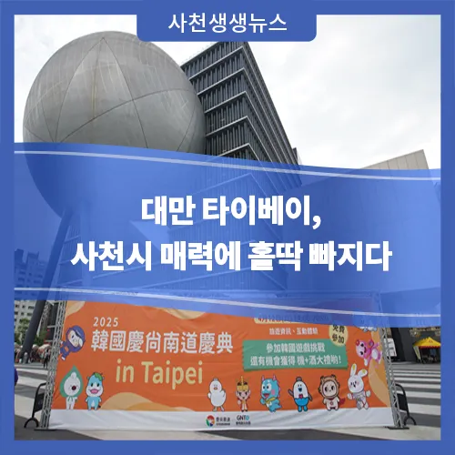 사천시는 지난 4월 11일과 12일 양일간 대만 타이베이에서 열린 ‘2025 대만 경남도시군 해외 현장마케팅’에 참여해 사천시의 주요 관광지와 여행 인센티브 등 해외 관광객 유치를 위한 패키지 상품으로 B2B, B2C 현장 마케팅을 통해 뜨거운 현지 반응을 이끌어내며 사천시 관광이미지를 각인시켰다.