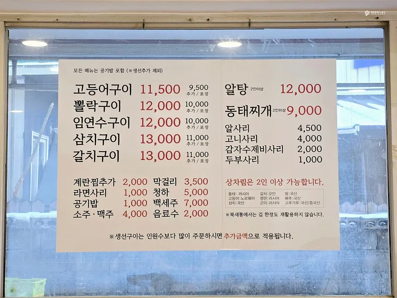 북새통은 알탕, 동태찌개, 생선구이 등