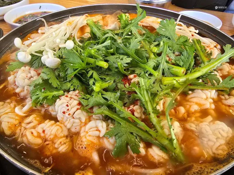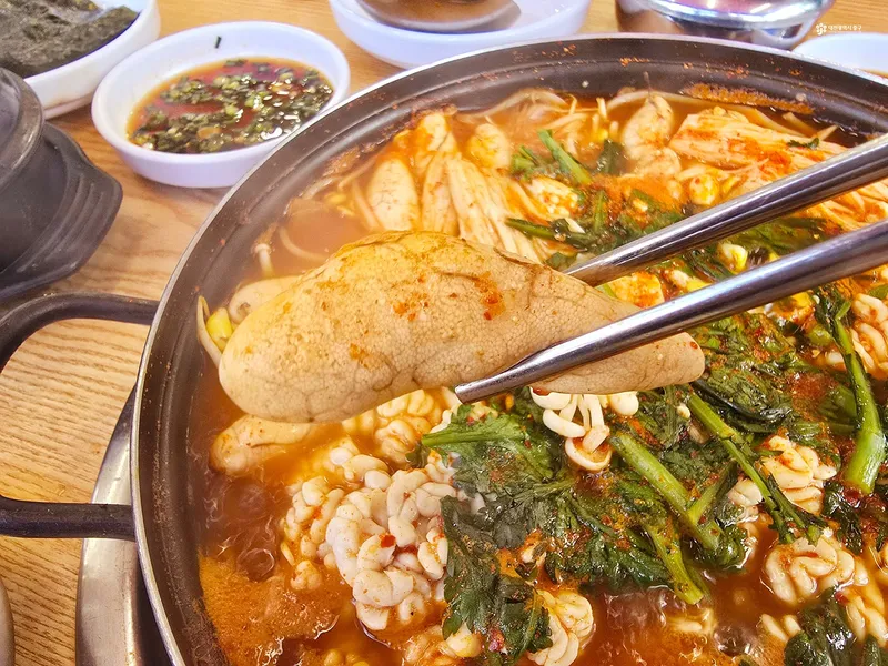 북새통의 인기 메뉴 알탕은 전골냄비 안에