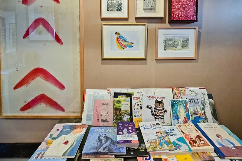 그림책도 따로 마련되어 있으며 벽에 걸려 있는 다양한 그림이 눈에 들어와 물어보니 상을 받거나 유명한 작가의 작품이 걸려 있다는데요, 서울에서 서점과 작은 갤러리를 함께 했기에 책뿐만 아니라 그림에도 진심이 느껴졌습니다.