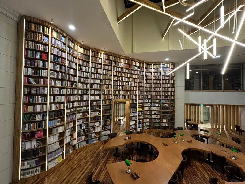 한 번 발을 들여보면, 아름다운 그림과 함께 조용한 분위기가 펼쳐집니다. 서가에 쌓인 책들은 마치 지혜의 보고 같아 보이며, 학문의 세계로 초대합니다. 학생들은 고요한 도서관 안에서 열심히 책을 펼치고, 노트에 전공지식을 기록하는 모습이 인상적입니다. 책을 펼치는 소리와 키보드를 두드리는 소음이 조화롭게 어우러져, 도서관은 고요함과 활기를 동시에 담아냅니다.