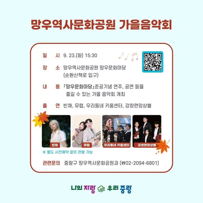 ▼ 망우역사문화공원 가을음악회 안내 ▼